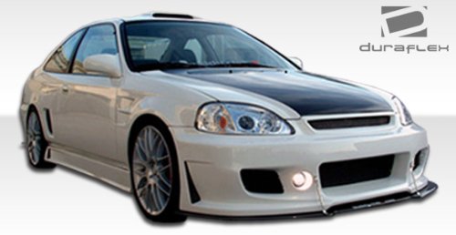 Duraflex FRP Honda Civic 2/4DR B-2 Body Kit 4pc > 1996-1998?Extreme Dimensions has revolutionized fiberglass marketing with their premium Duraflex aerodynamics. Duraflex is not flexible like urethane or plastic bumpers. Duraflex fiberglass combines fiberglass, plastic, and flex resins to obtain its unique features. Because of these features, Duraflex technology obtains a durability rate than the average fiberglass product, resulting in reduced shipping damages. Duraflex products come complete with a black primer finish, high quality mesh grille if applicable, generic hardware kit, and a basic guide to help you install the product. This revolutionary product allows the consumer to receive a premium fiberglass product at an affordable price. All fiberglass parts require modification, shaving, sanding, drilling, filling in order to ensure proper fitment.FeaturesHigh quality 6 oz. fiberglassProfessional prep work requiredCutting, Shaving, Filling required on FRP partsBlack primer finishHigh quality mesh grilleInstallation GuideGeneric Hardware Kit (most parts)Reduced damage rate up to 75%DISCLAIMER: Due to differences in products and design, durability test results may vary.